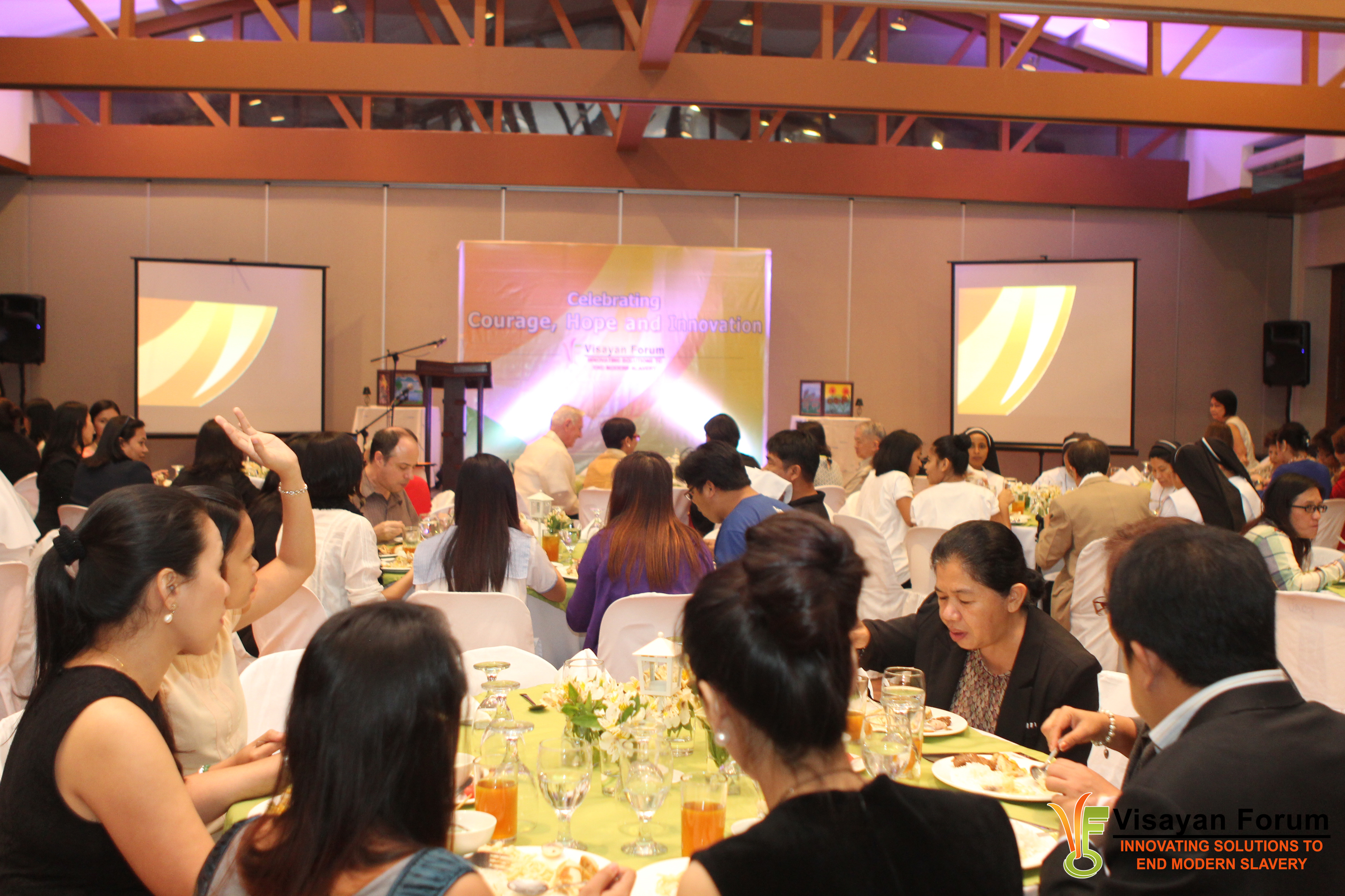 On February 26, 2015, we celebrated 24 years of courage, hope, and innovations in the fight to end modern slavery – not just of Visayan Forum, but also of the partners who have supported and worked with us through the years. For one night, we gathered over 120 partners and friends to join us in a thanksgiving for the mission that has been entrusted to us, and in prayer for greater strength to work towards our shared vision. It was a night of sincere gratitude, joyful cheers, tear-jerking testimonies, inspiring words, and promising visions among colleagues, friends, and as the VF survivors put it in their opening song, “family”.